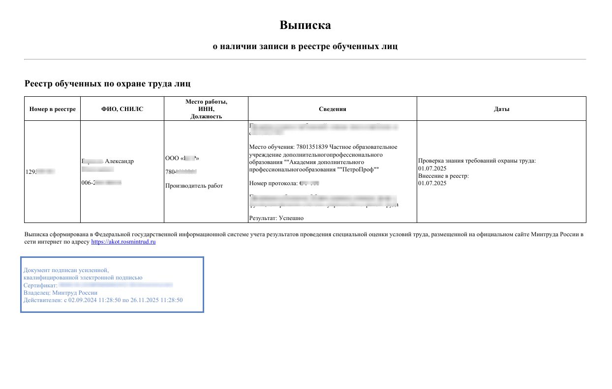 Программа разработана с акцентом на реальную практику: обсуждаются типичные ошибки, моделируются производственные ситуации, закрепляются алгоритмы безопасного поведения. Такой подход обеспечивает полное понимание требований охраны труда и помогает применять их в повседневной работе.